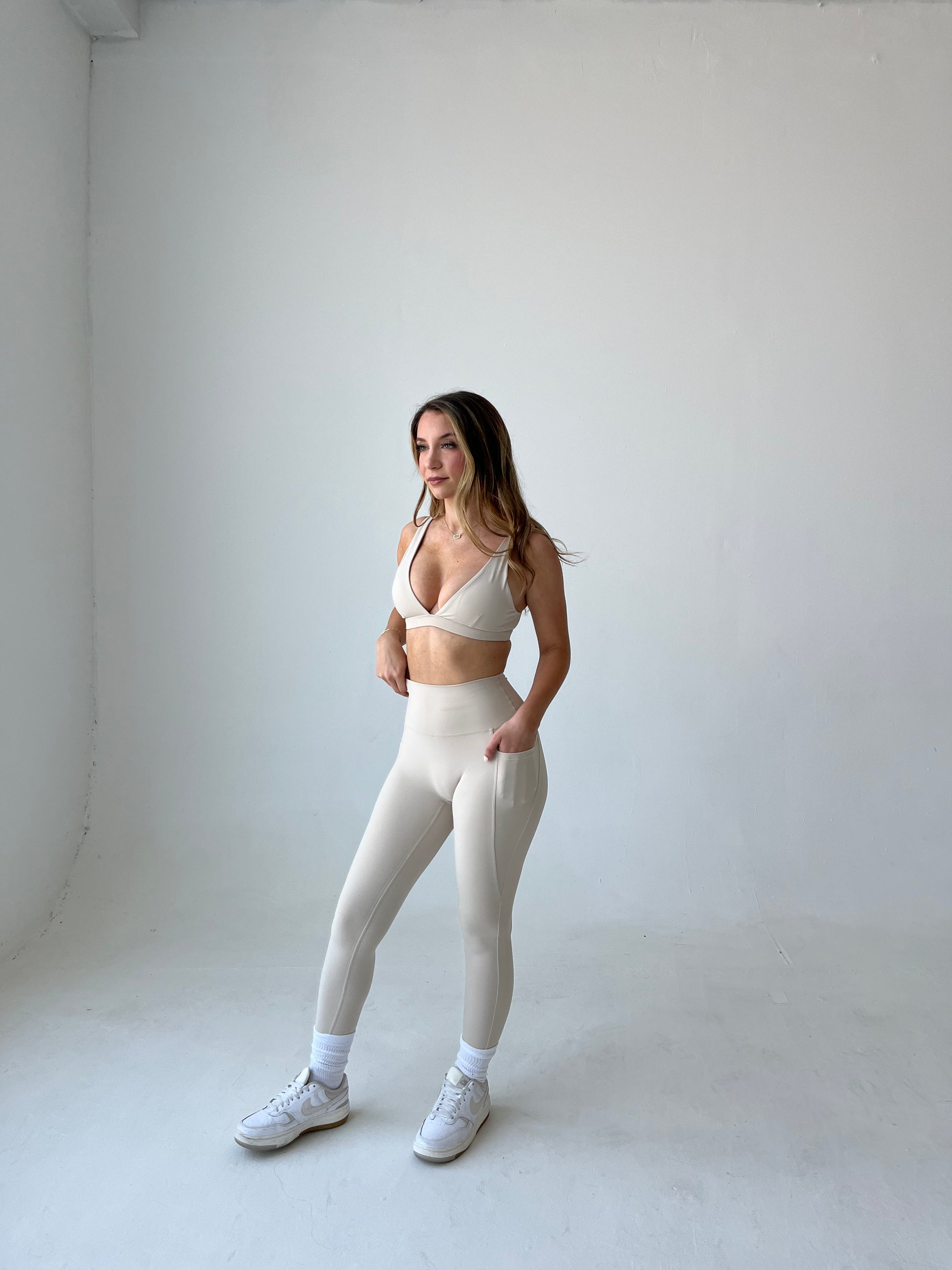 Introducing the AVE High-Waisted Leggings - the epitome of comfort, functionality, and style. Crafted in a beautiful cream color, these leggings are designed to elevate your everyday wardrobe effortlessly.