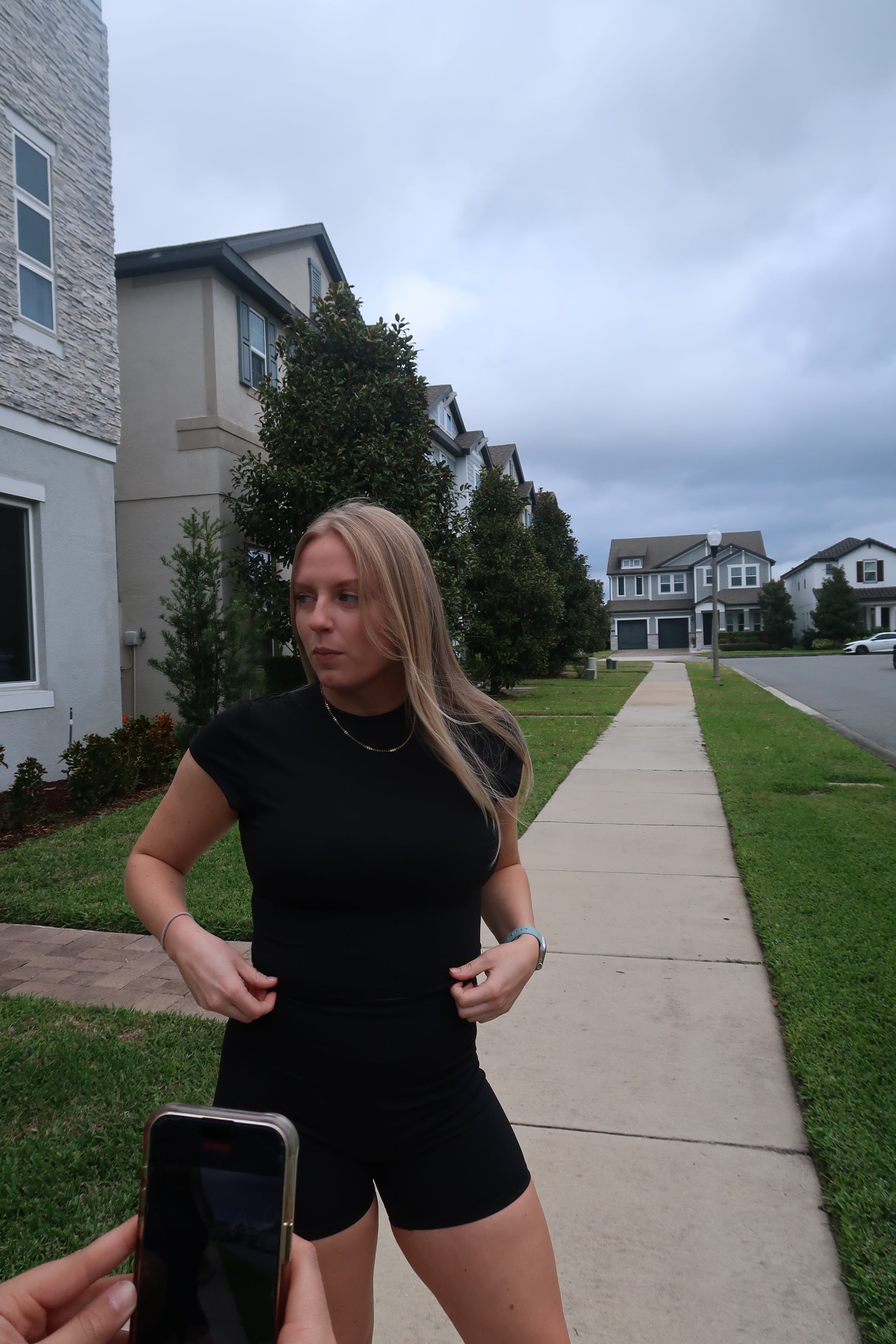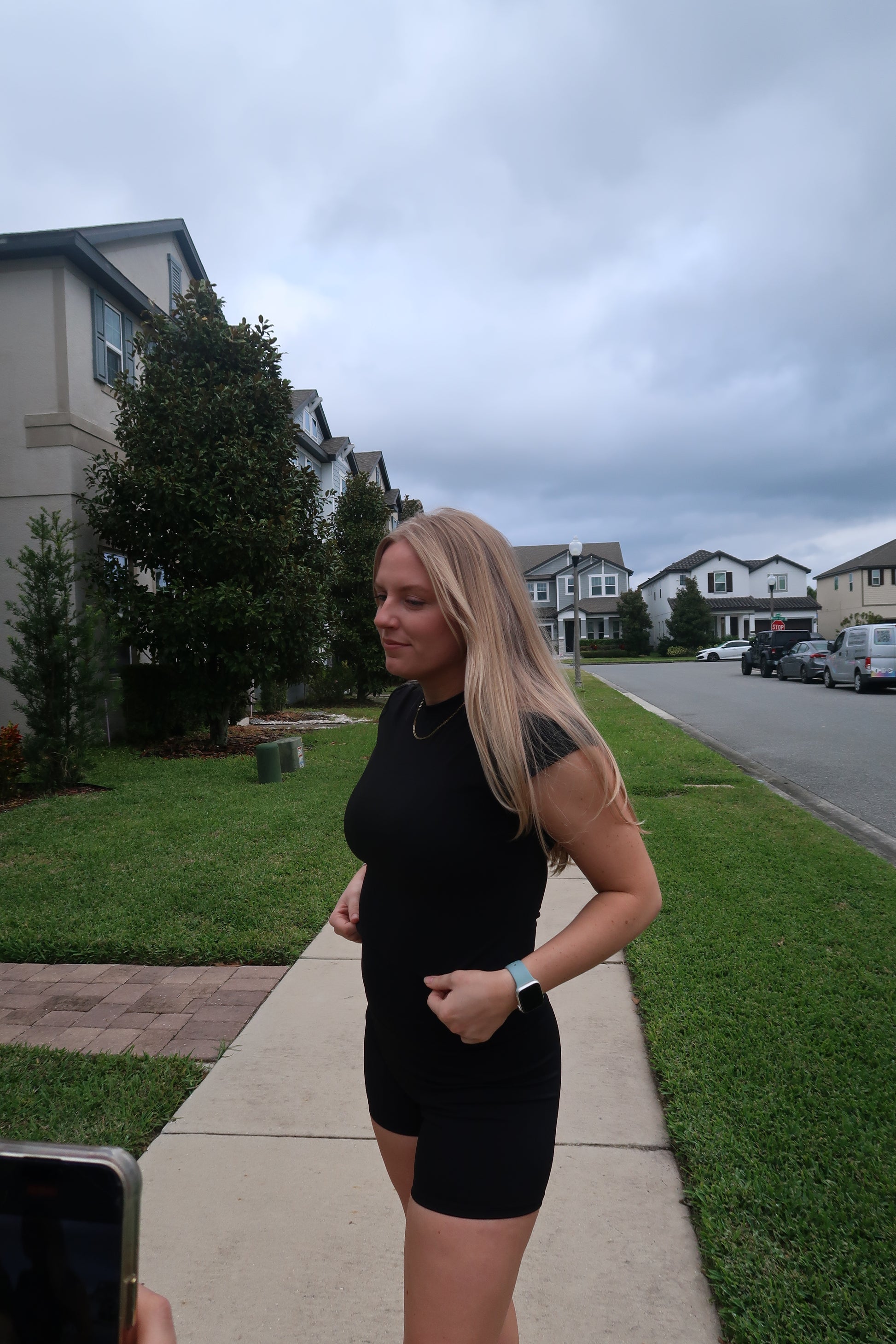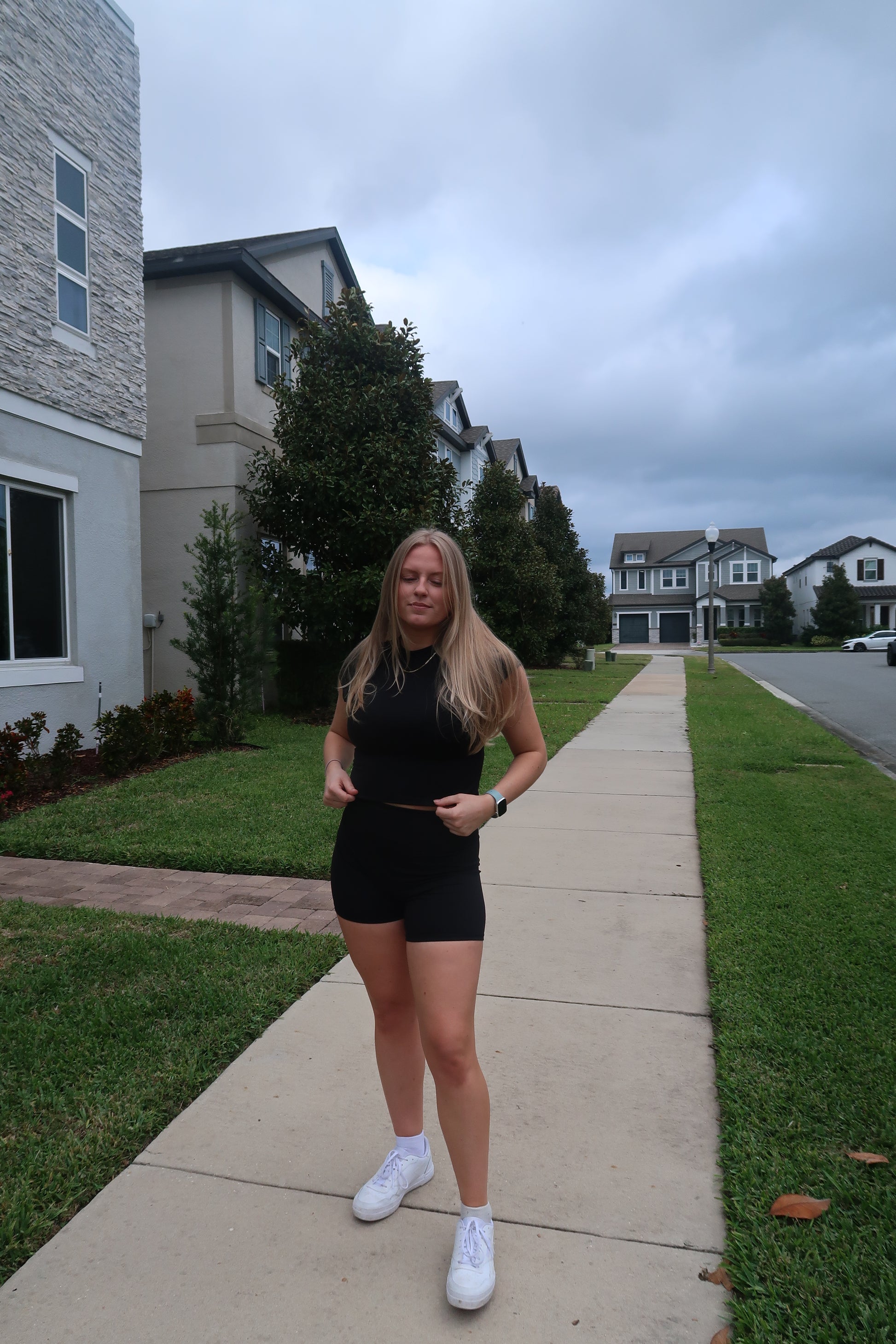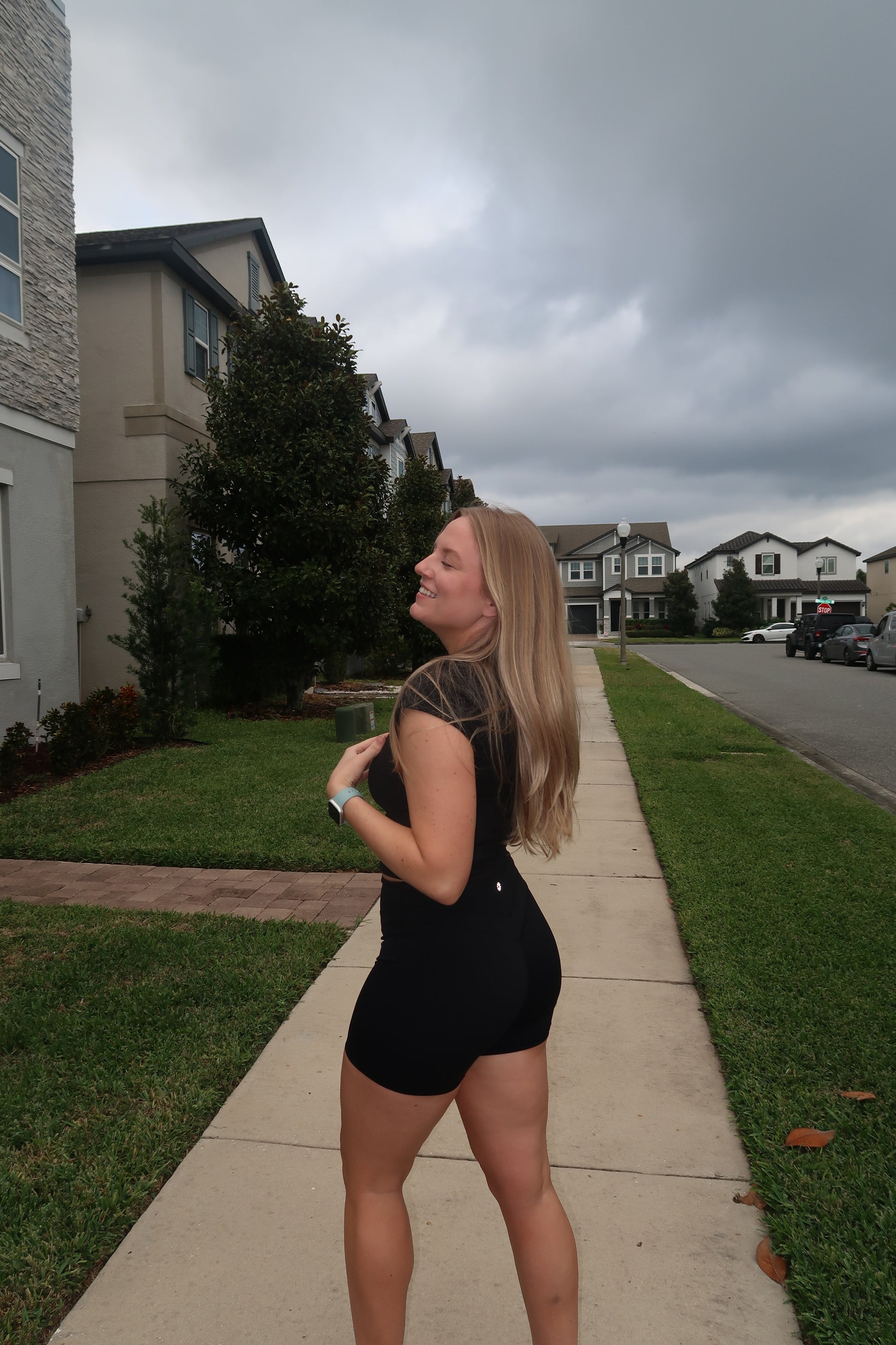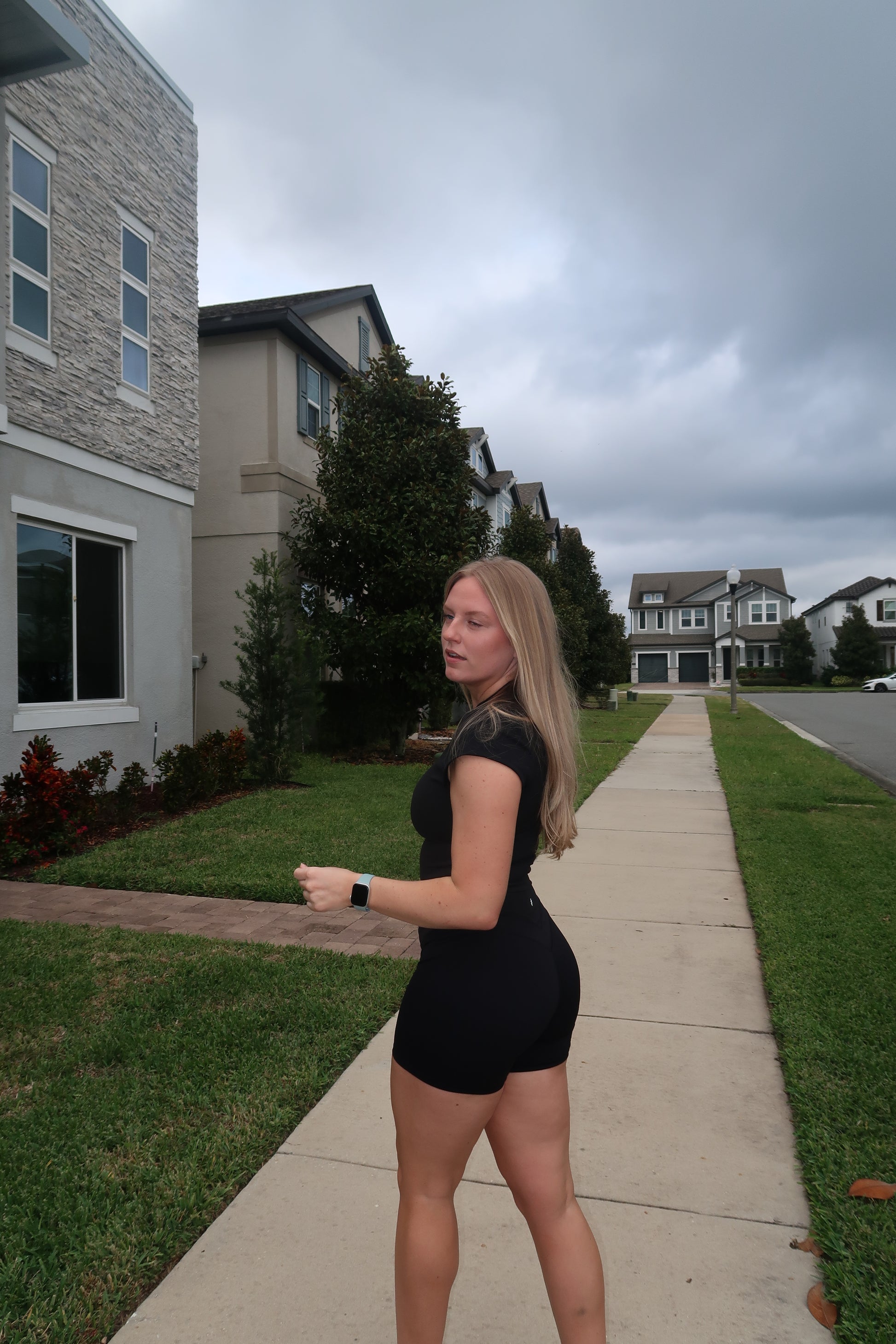 The BRI ACTIVE SHORTS: High-waisted, mid-length shorts designed to stay in place without rolling up. Ultra-comfy and supportive, they’re perfect for running, lifting, or cycling, offering a smooth, secure fit for every workout.