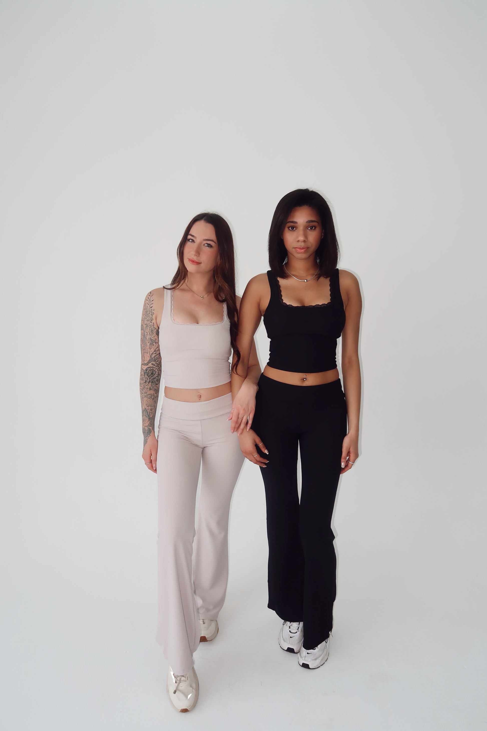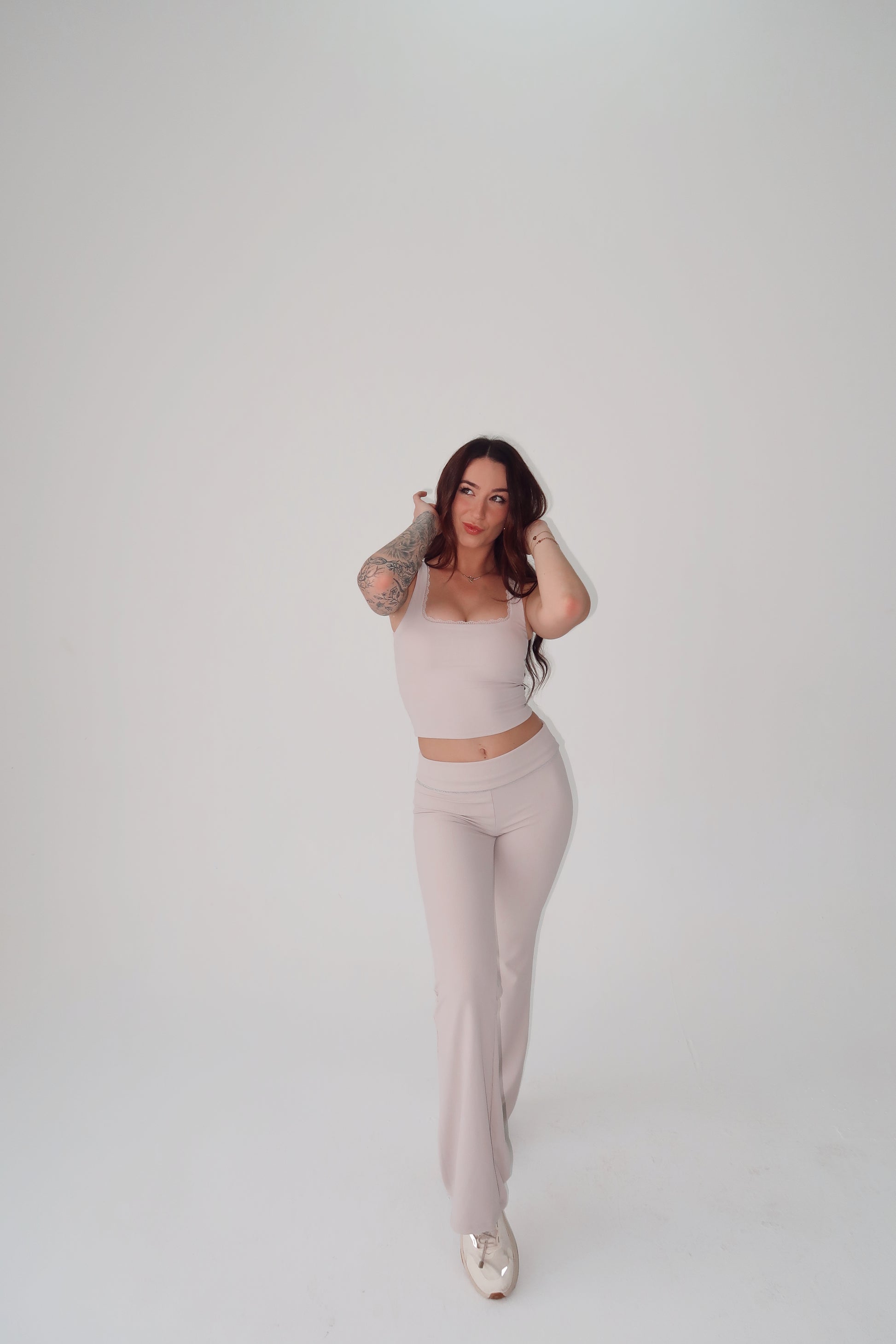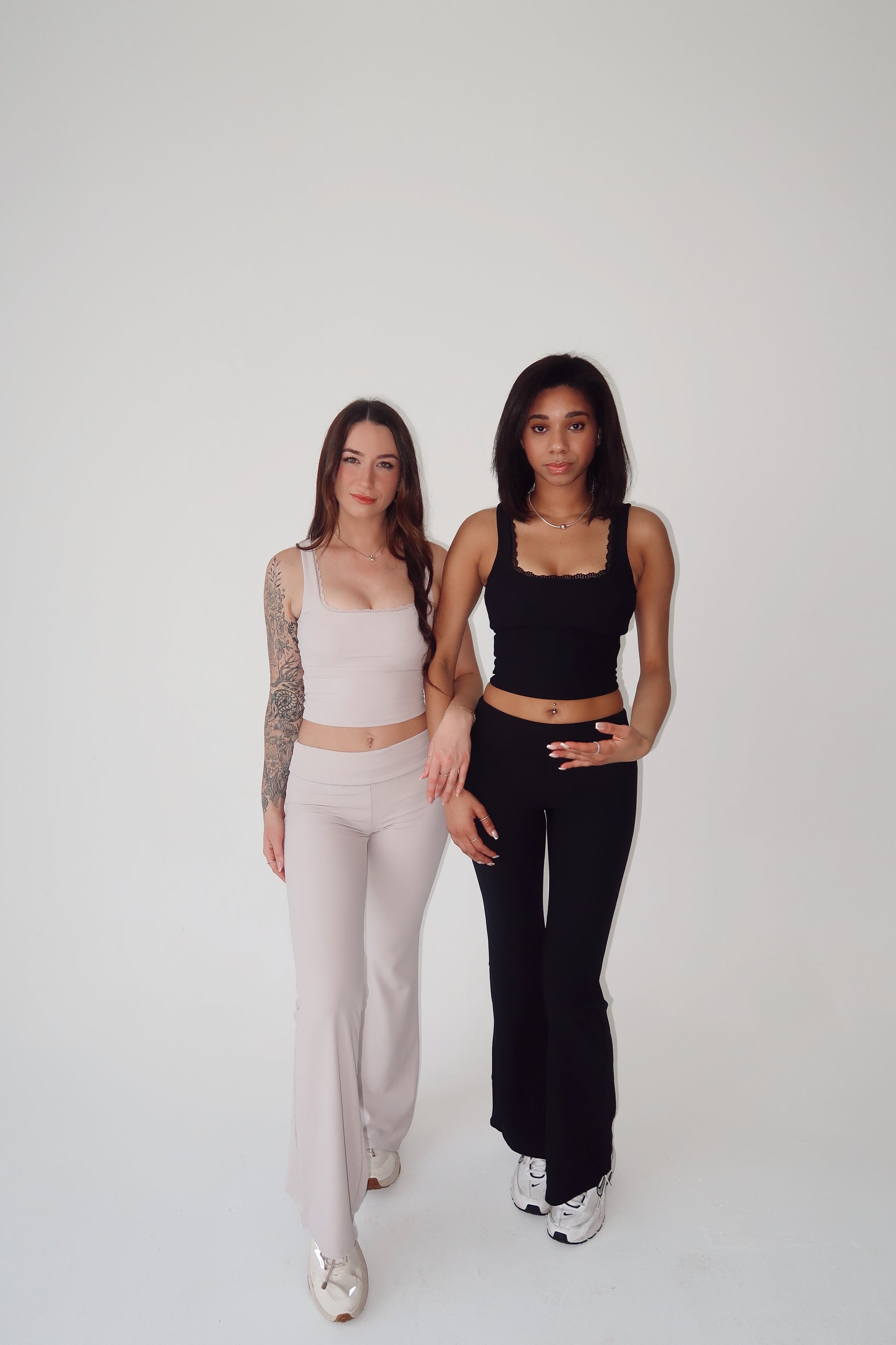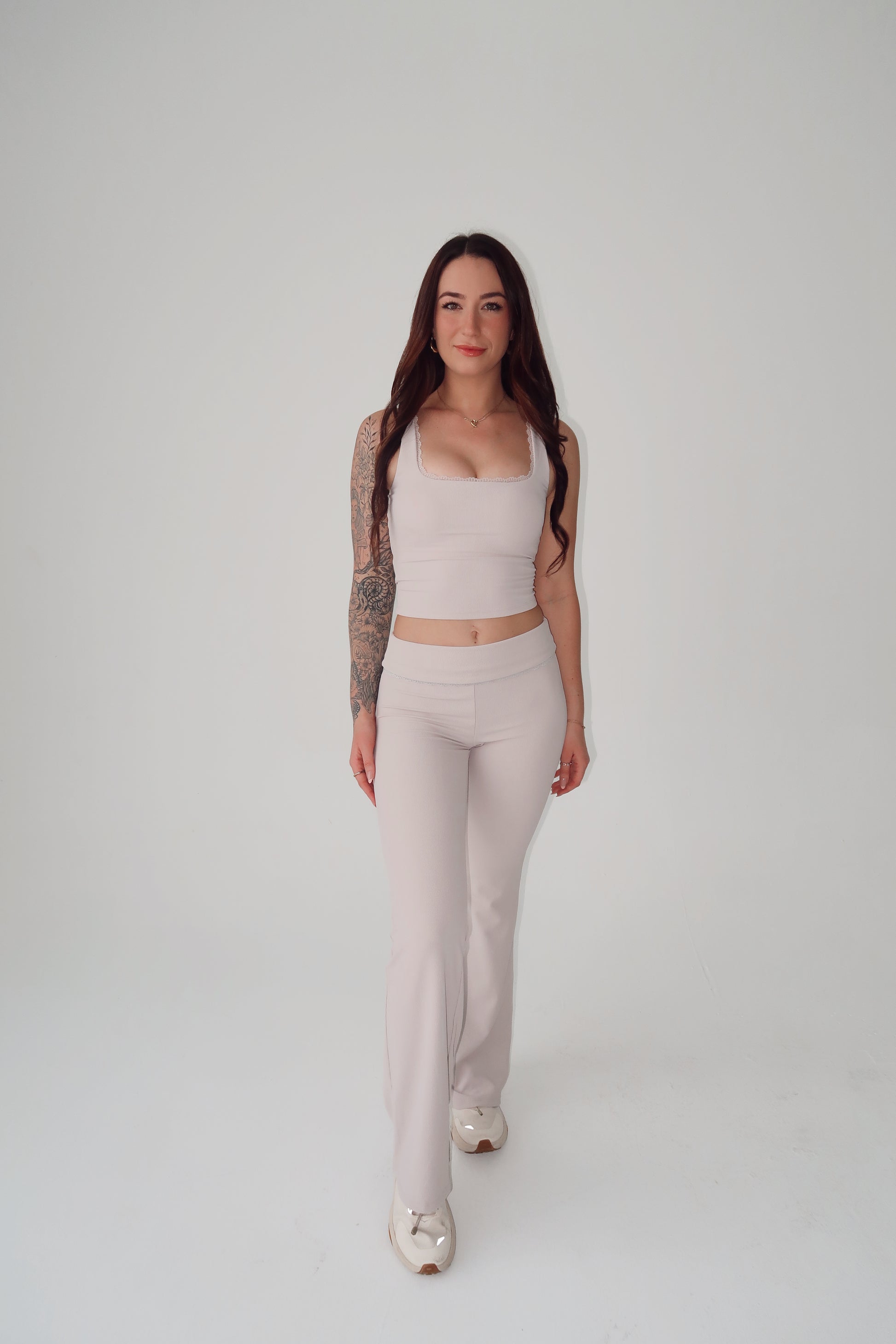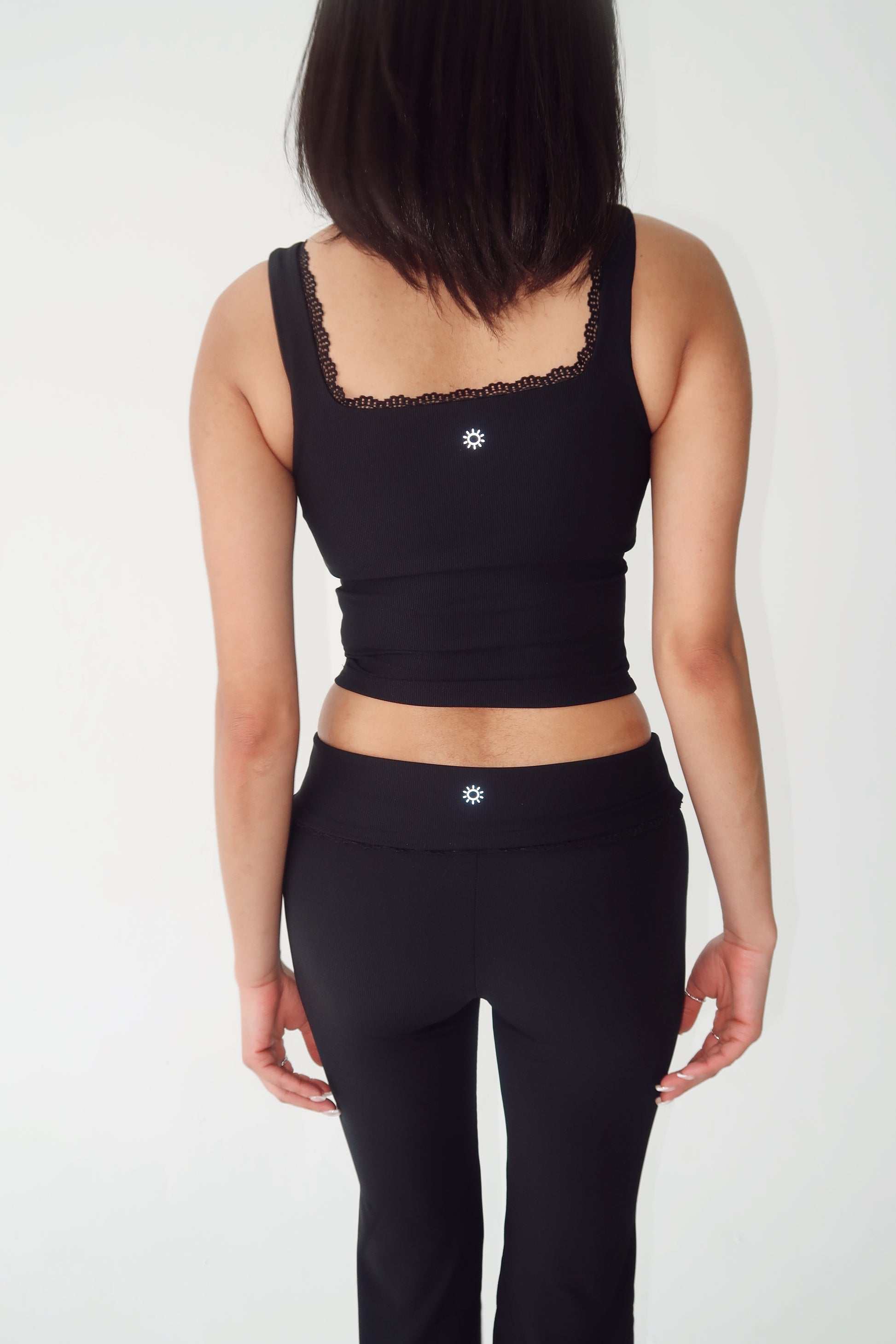 Sports tank with removable padding and a lace trim.
