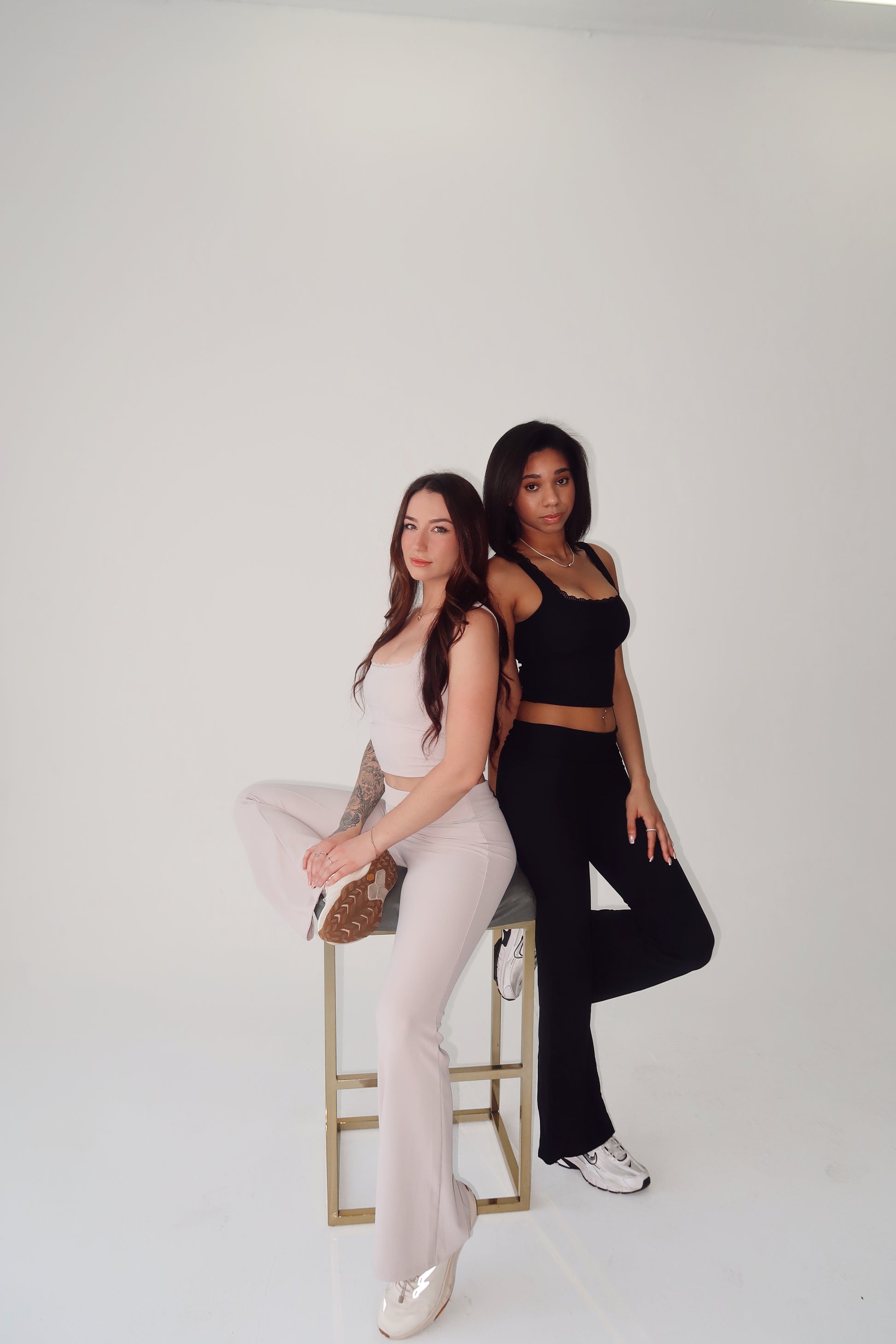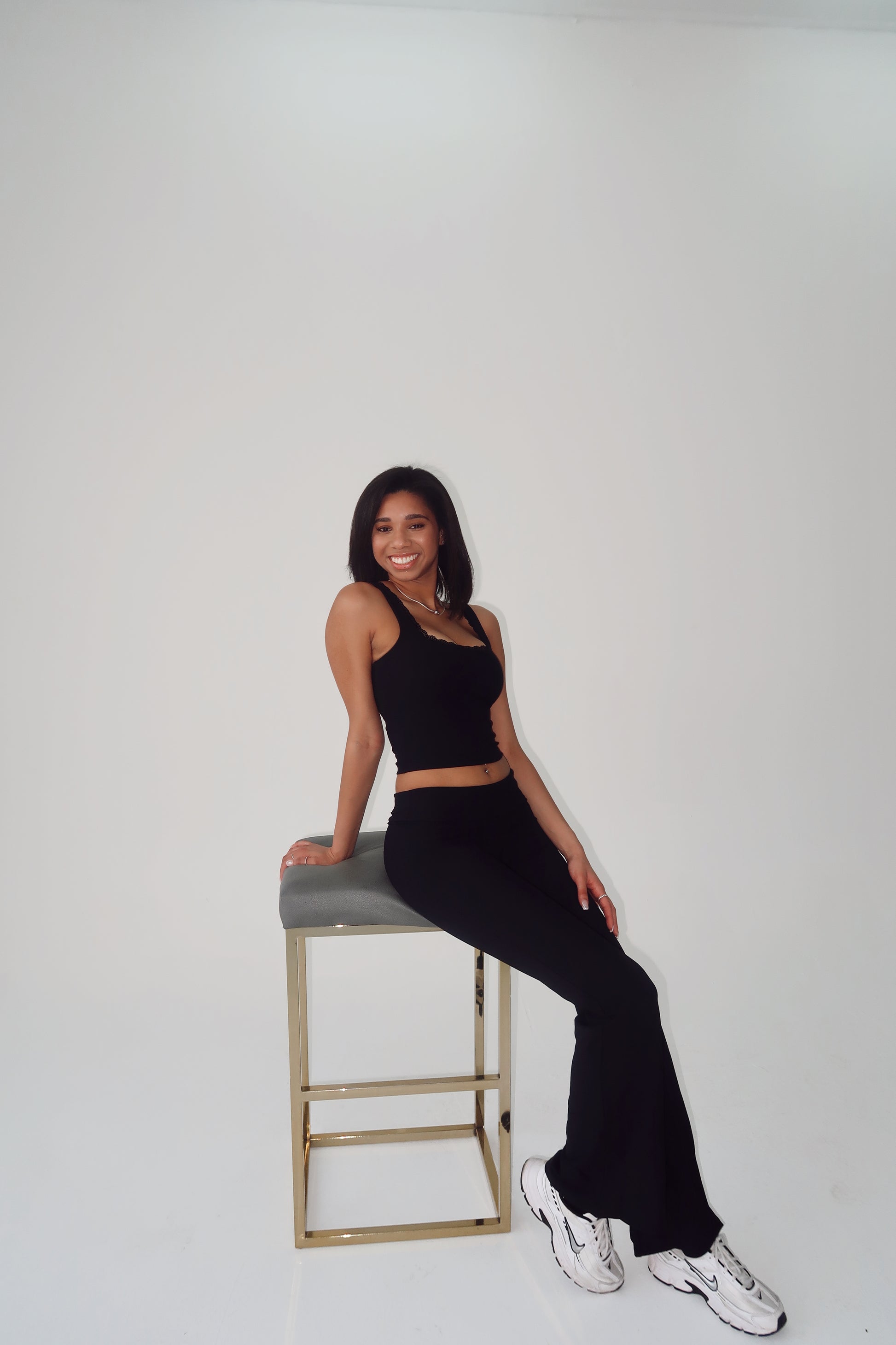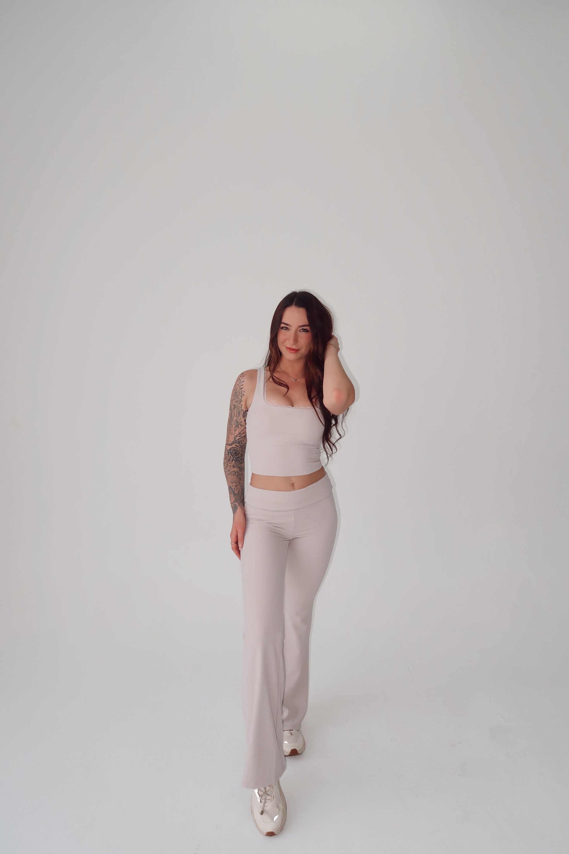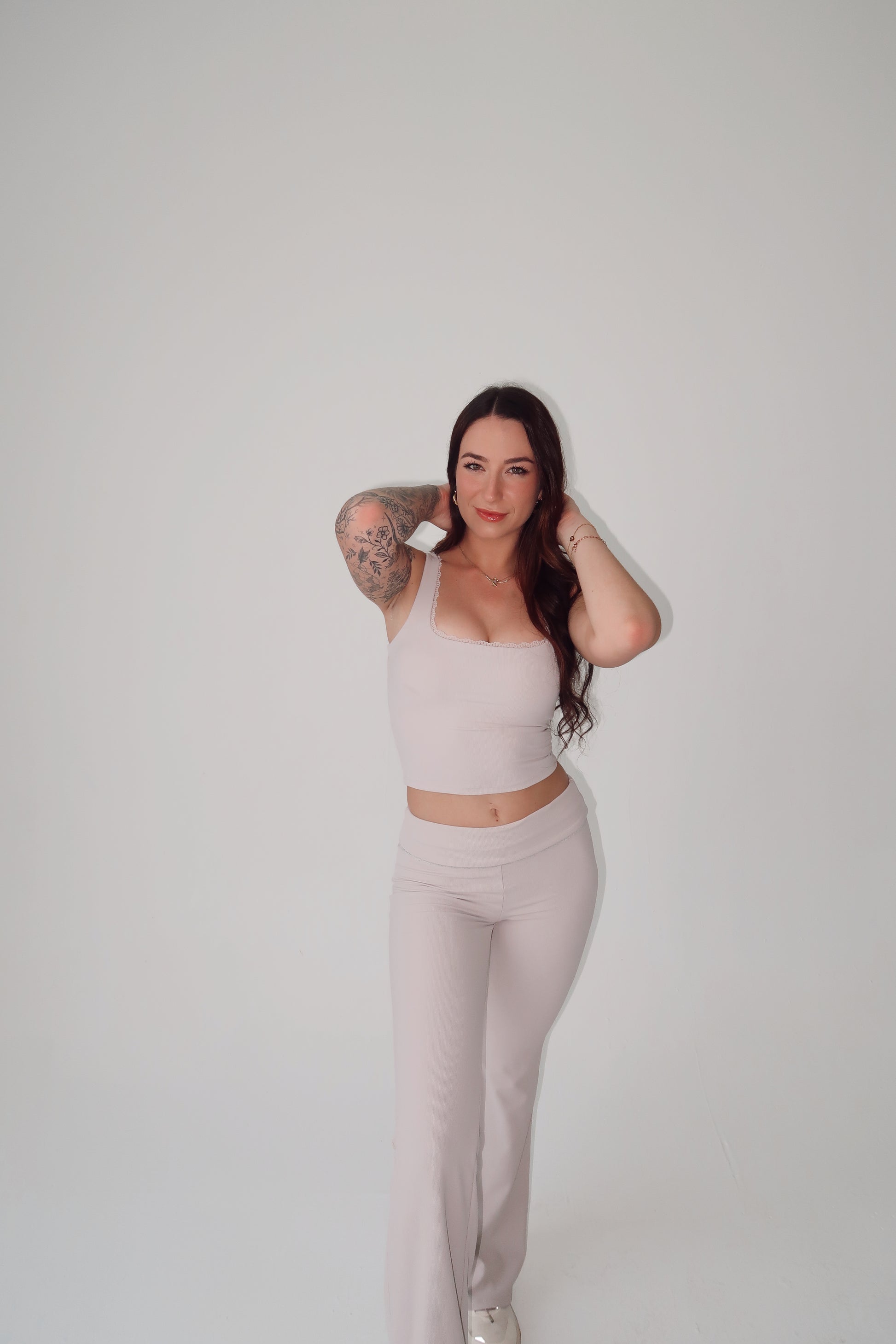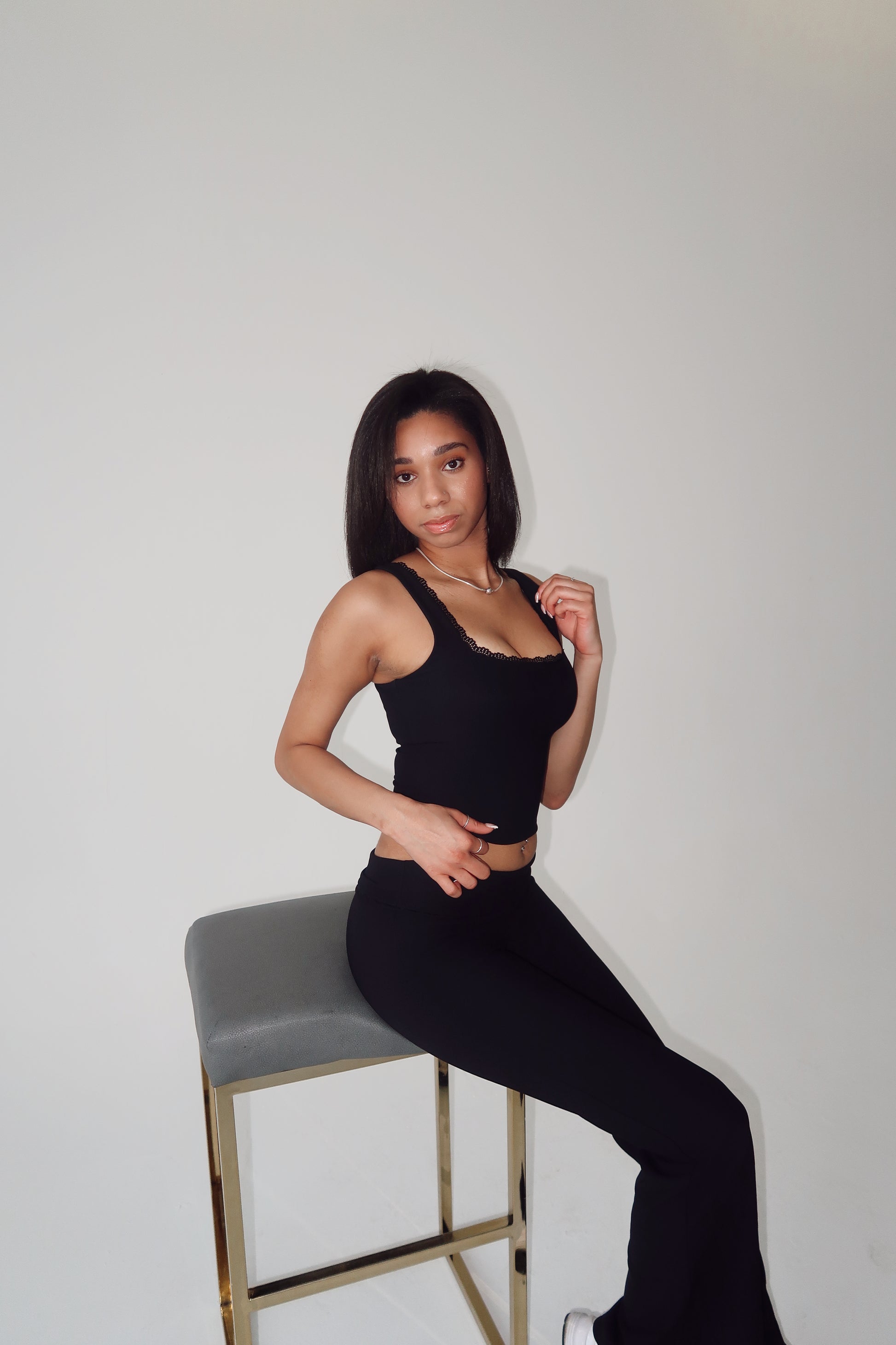 Sports tank with removable padding and a lace trim.