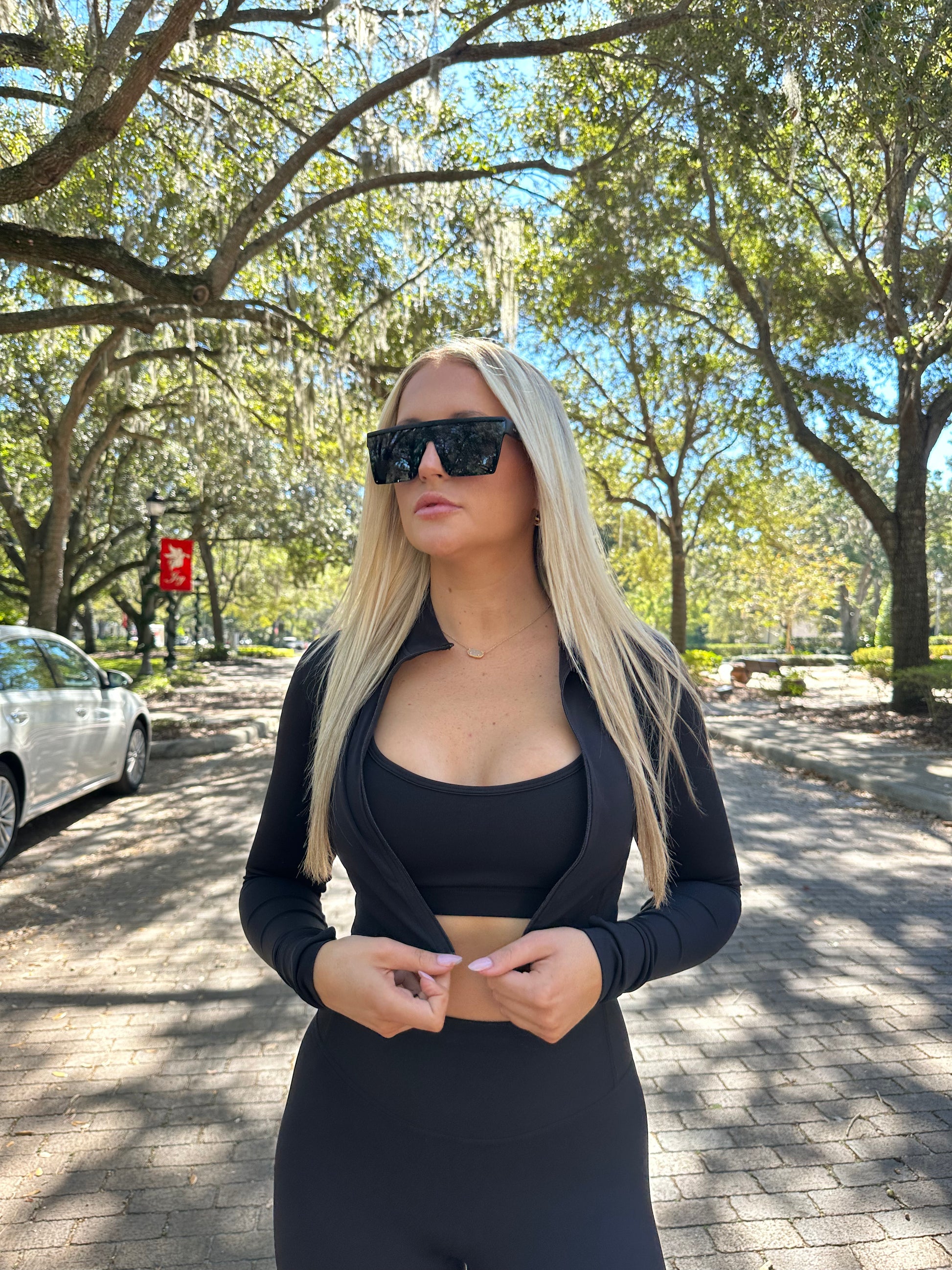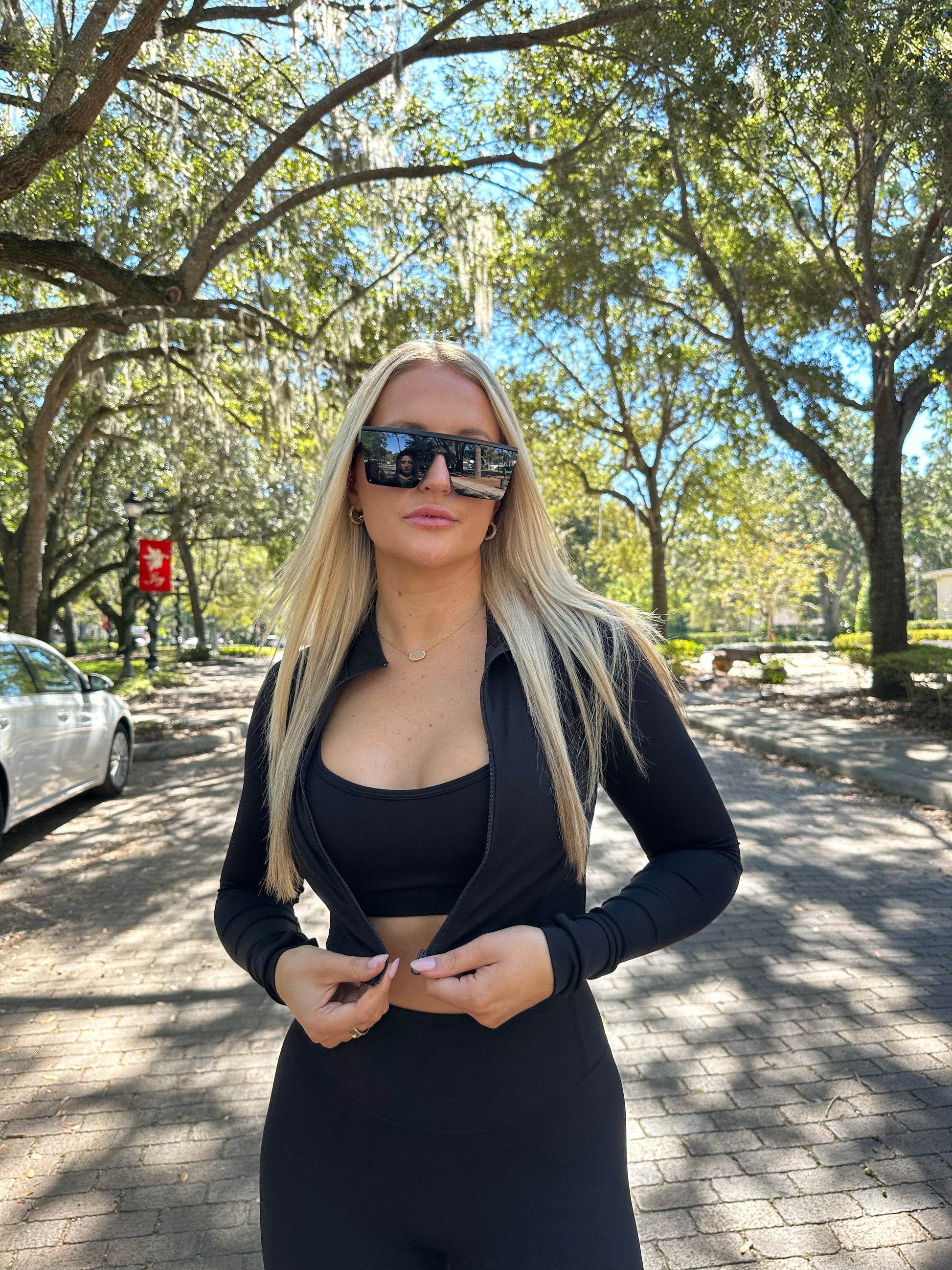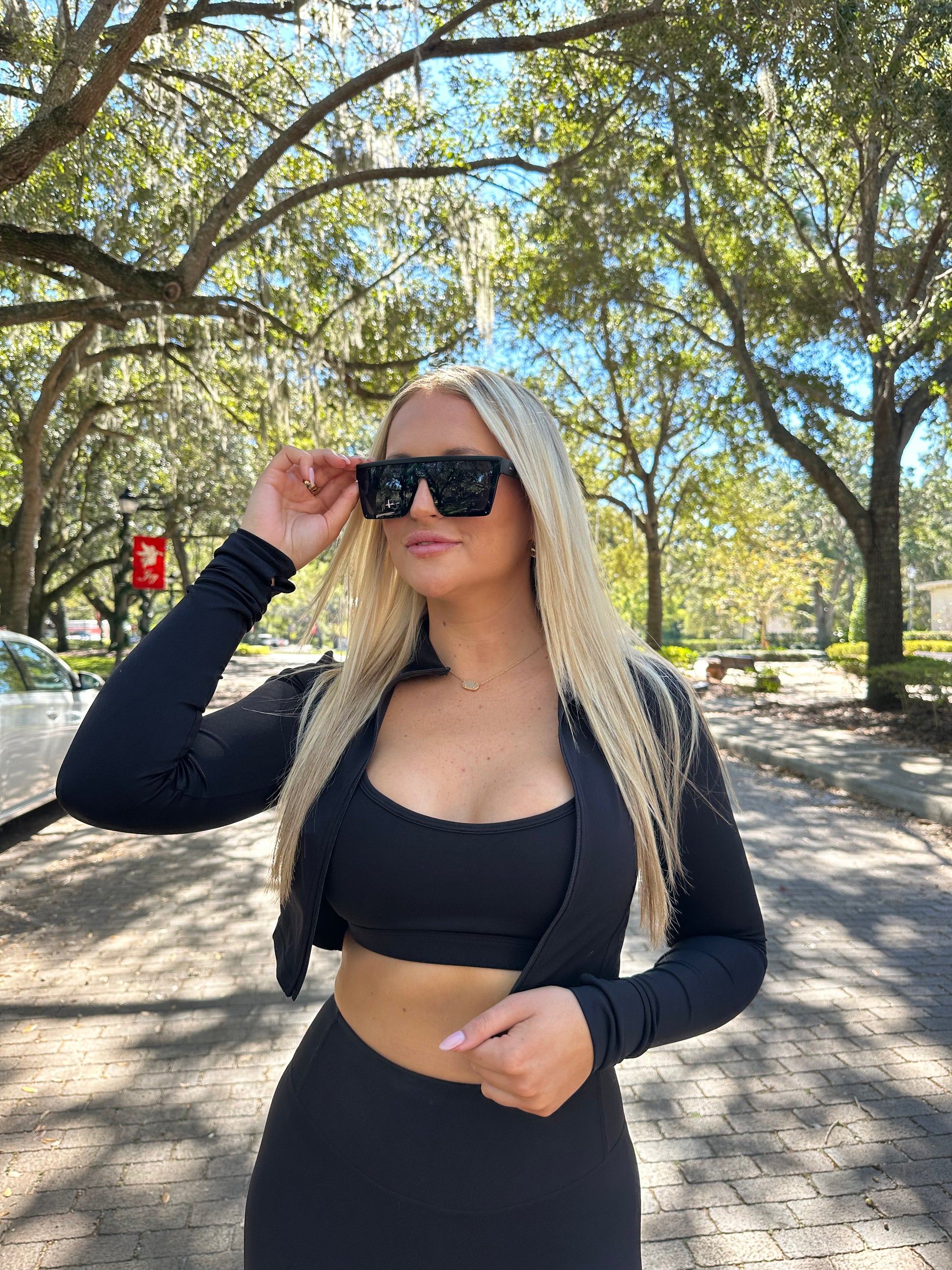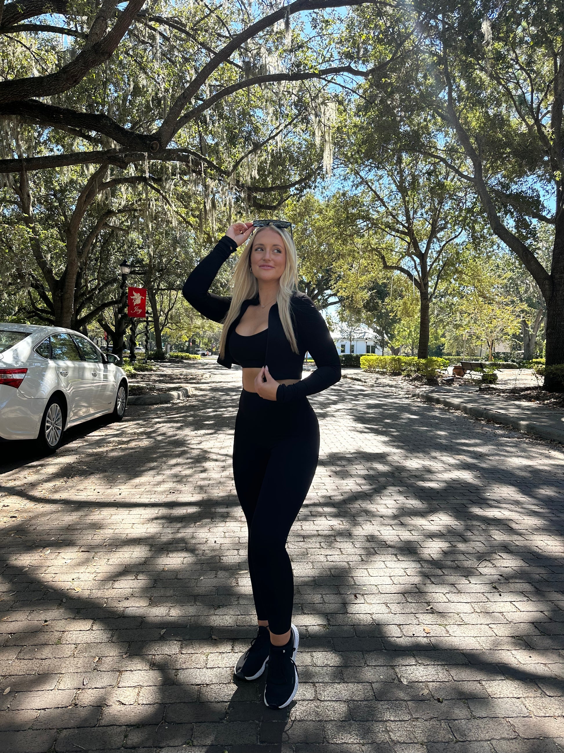 Crafted with your comfort in mind, the sports bra features a secure yet flexible design, ensuring reliable support during your most intense workouts. The sleek black color seamlessly integrates with the entire set, creating a cohesive and chic look. The "Anything But Basic" Sports Bra not only enhances your style but also provides the necessary support to boost your confidence and performance.