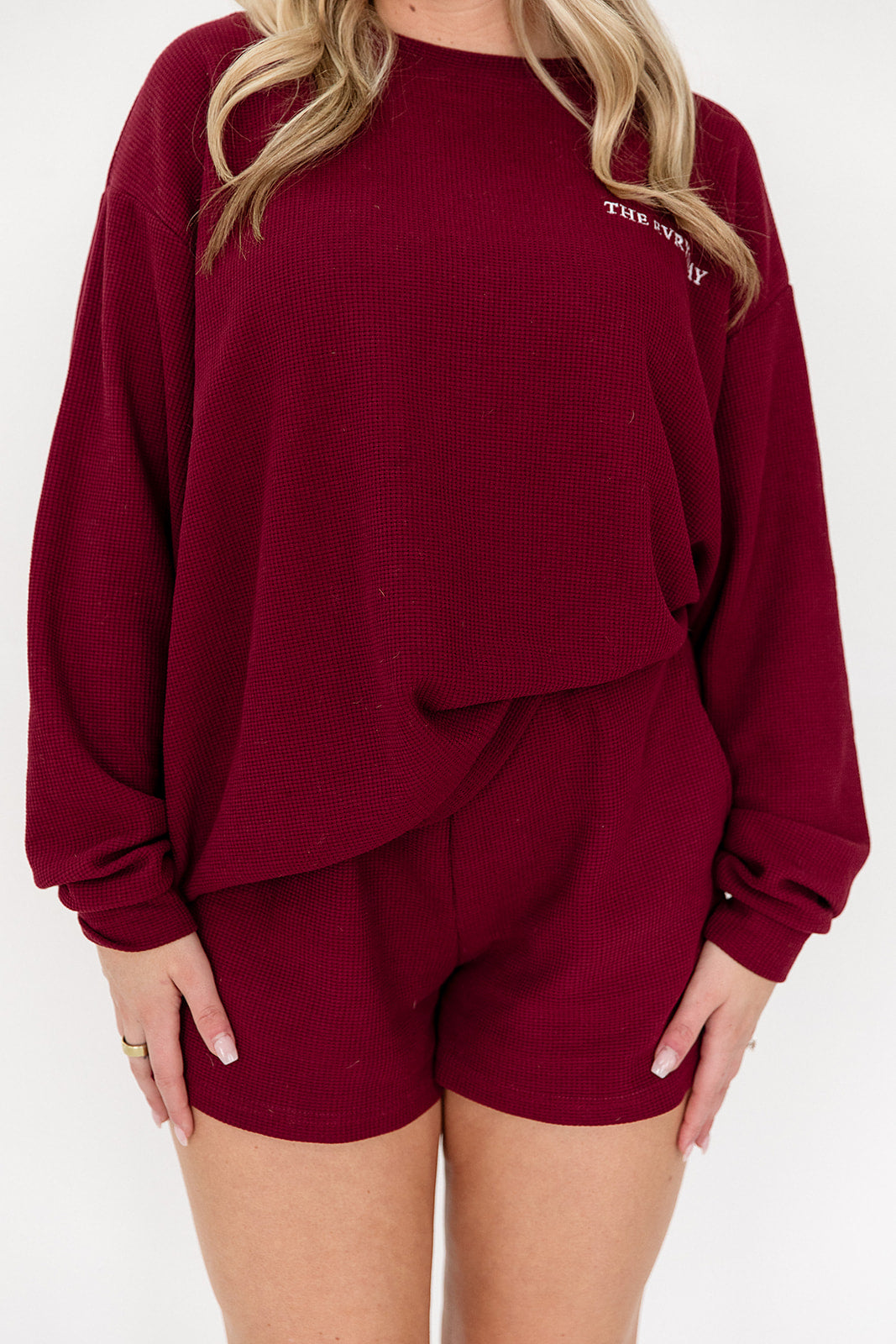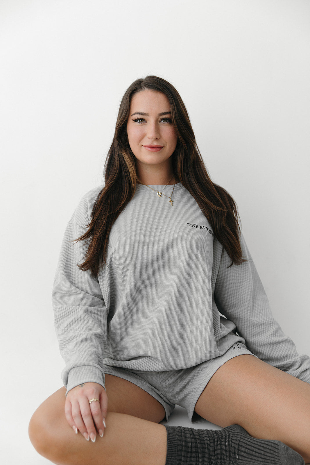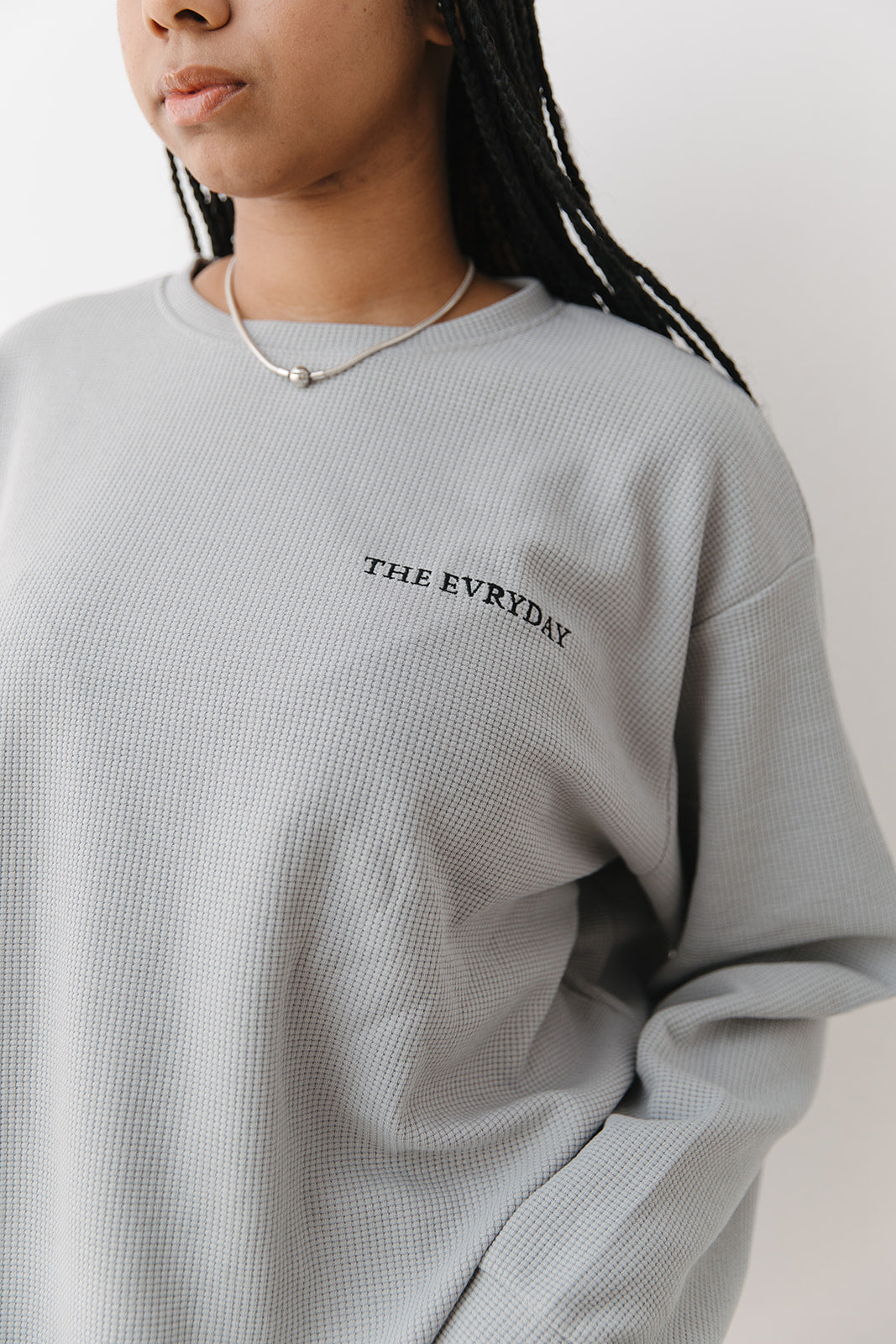 Indulge in pure comfort and style with The Sunday Sweatshirt. This oversized, waffle knit delight in a timeless light grey offers a soft, cloud-like interior for your ultimate relaxation.