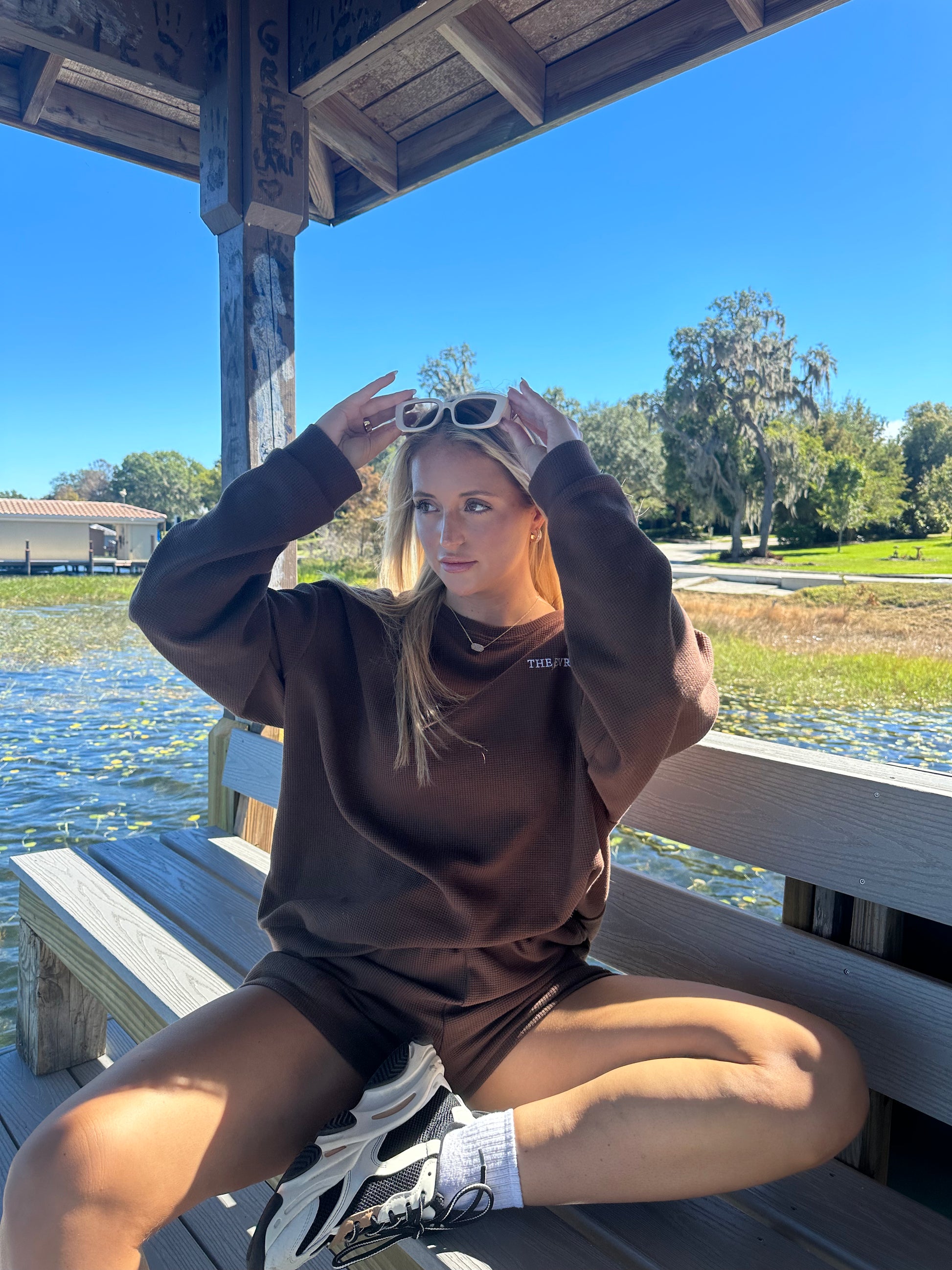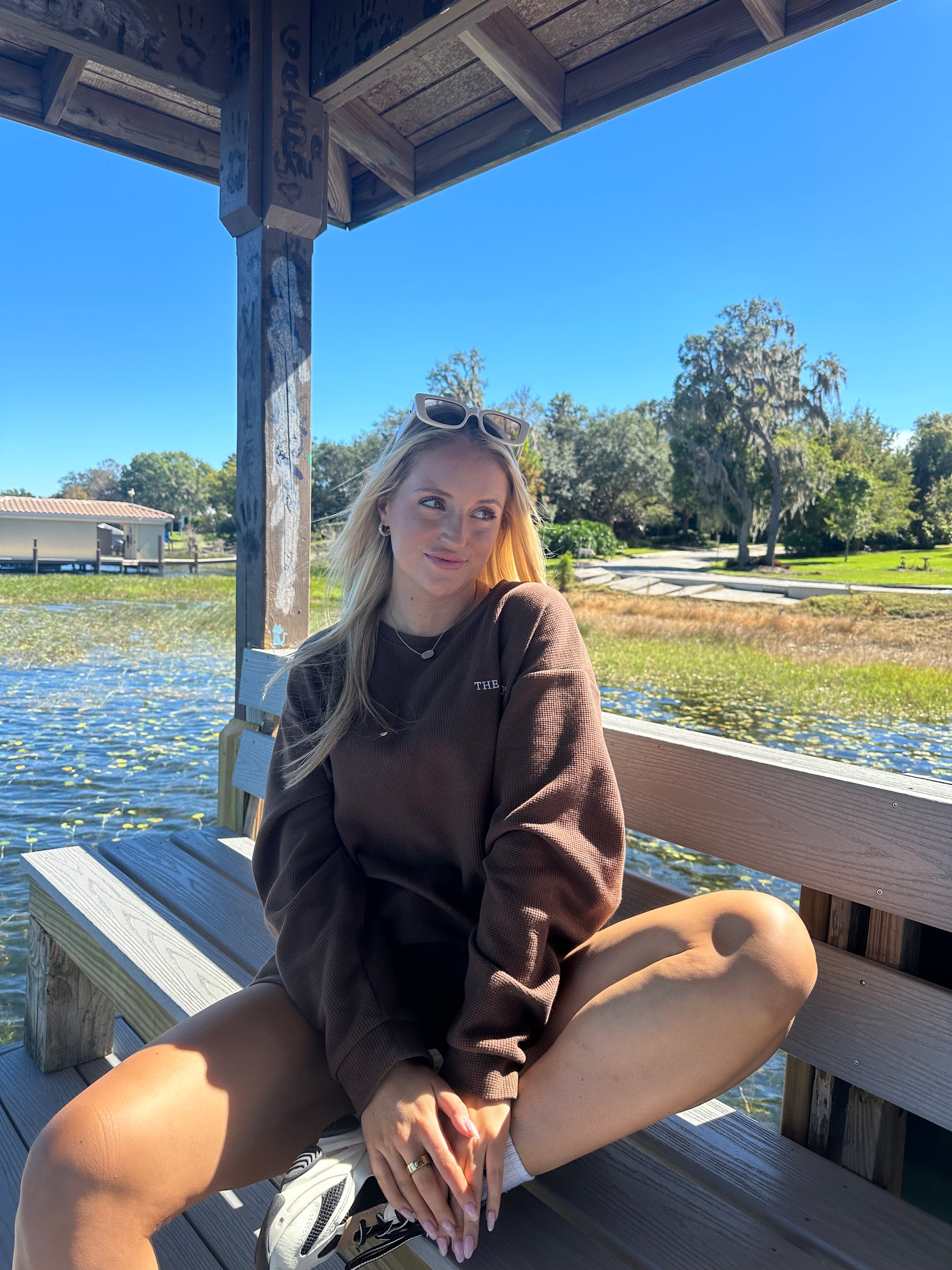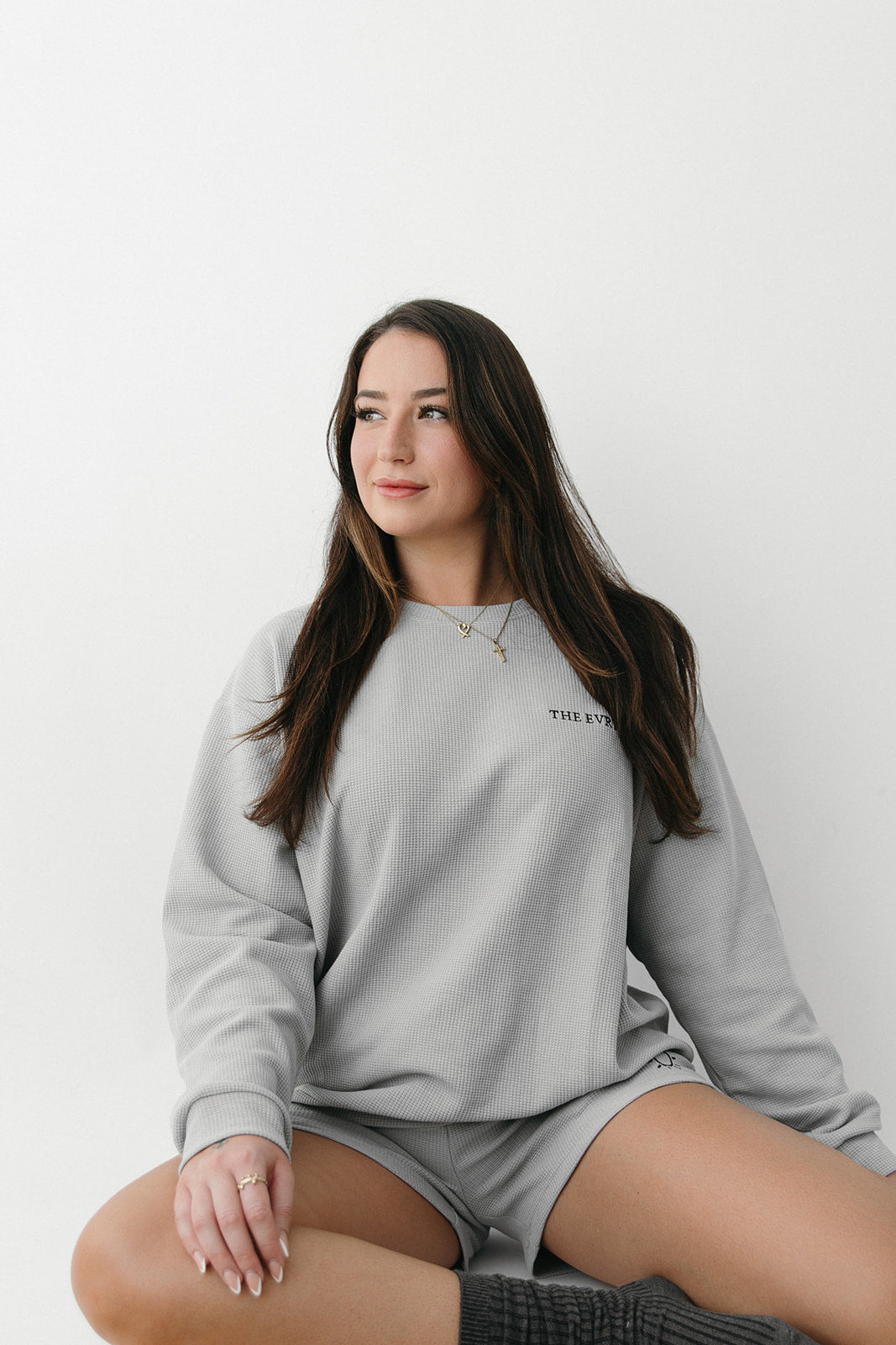 Indulge in pure comfort and style with The Sunday Sweatshirt. This oversized, waffle knit delight in a timeless light grey offers a soft, cloud-like interior for your ultimate relaxation.
