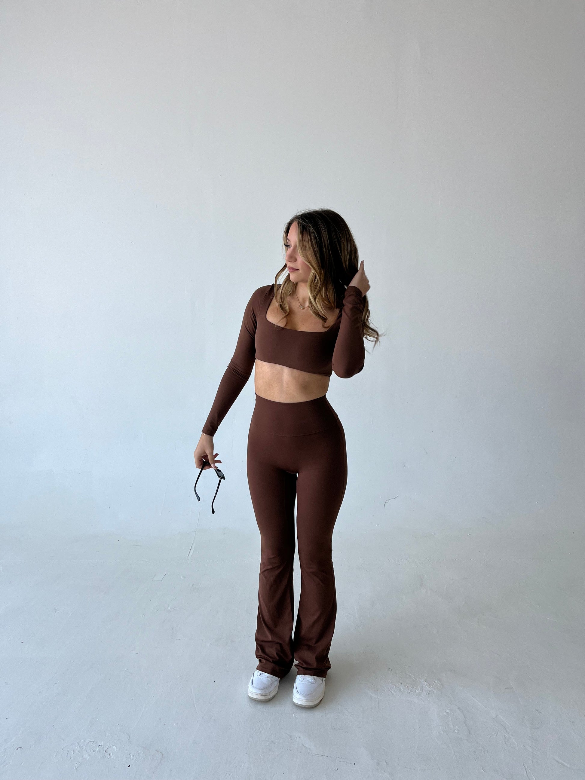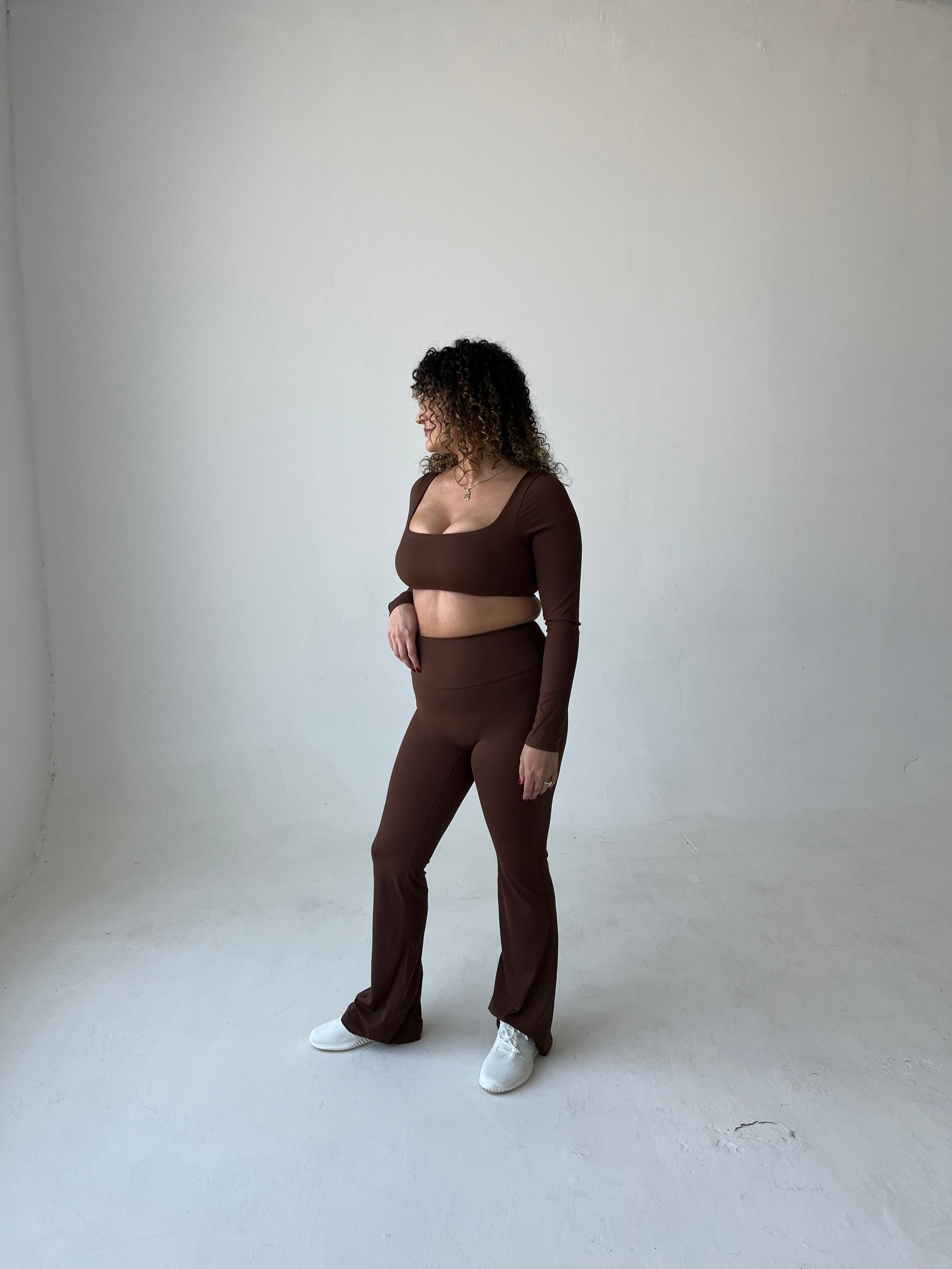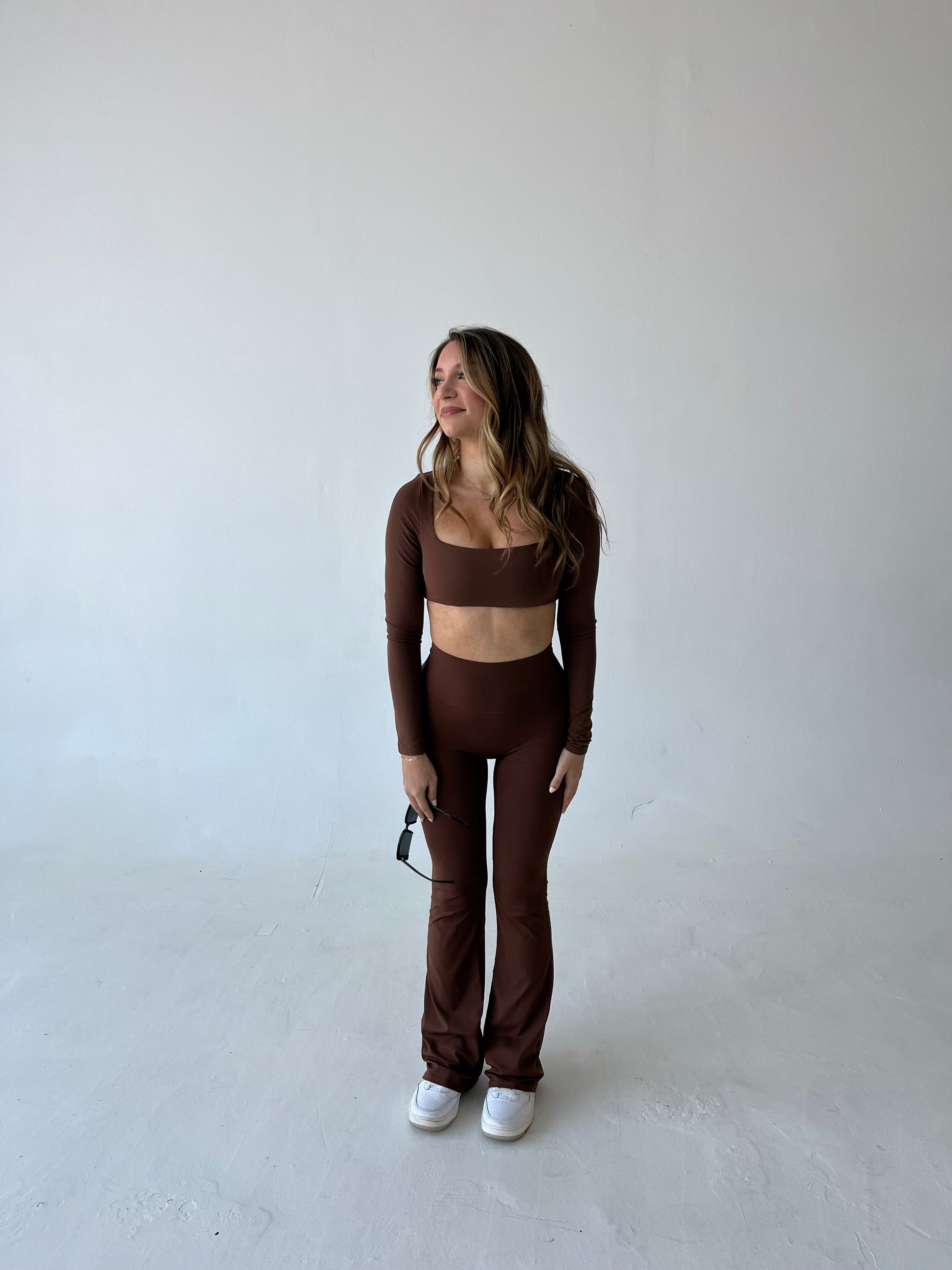 In a rich, earthy brown color, the Rocky Sports Bra adds a touch of sophistication to your gym ensemble. Its long sleeves offer extra coverage and protection, making it perfect for cooler weather workouts or as a stylish layering piece.