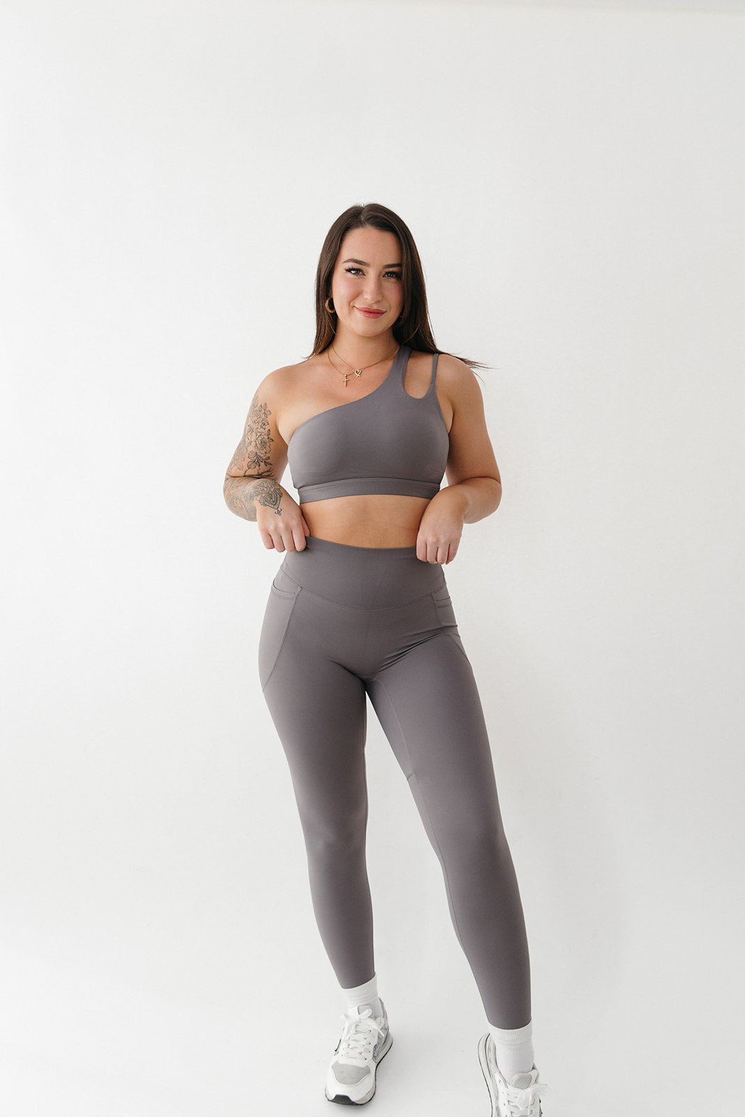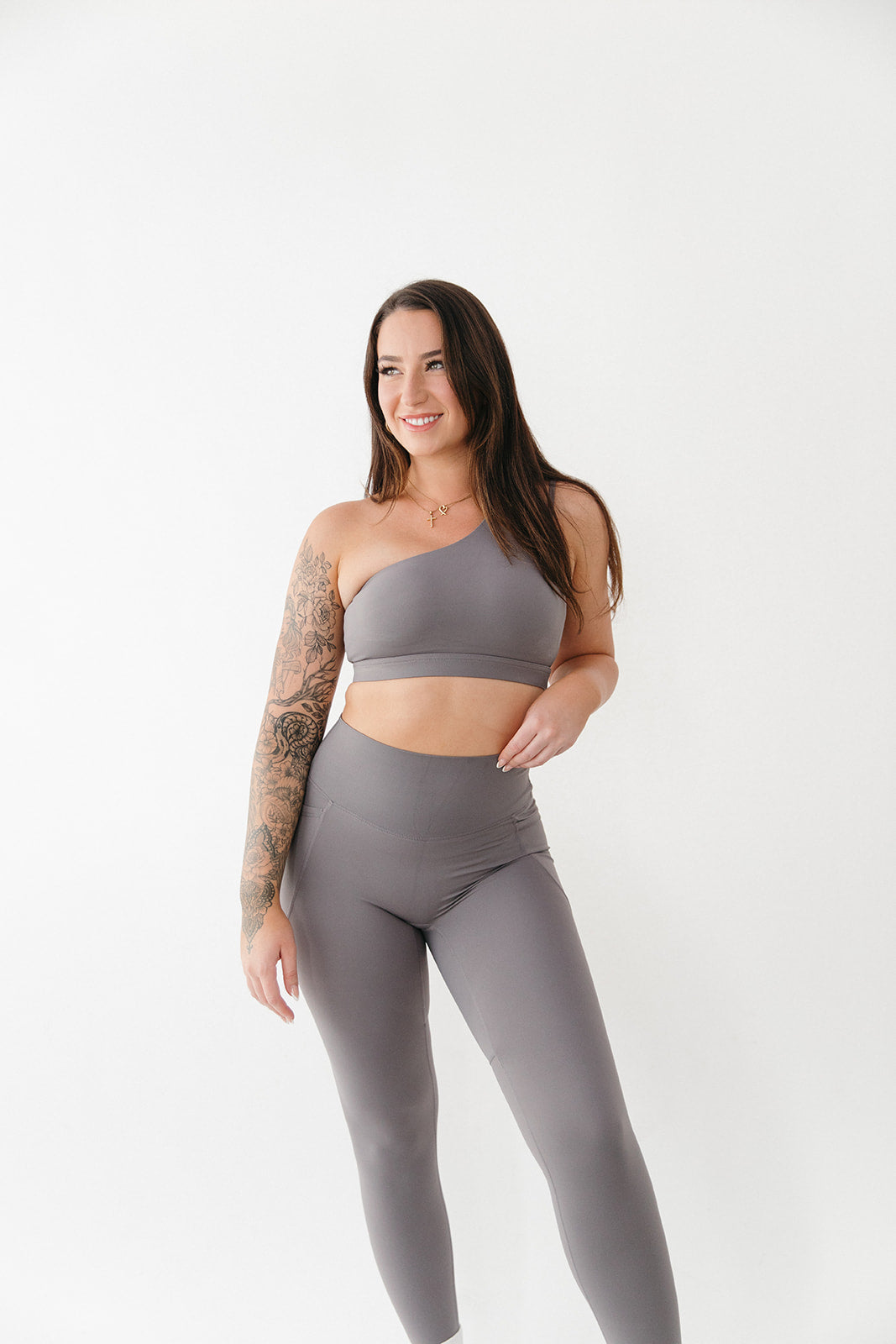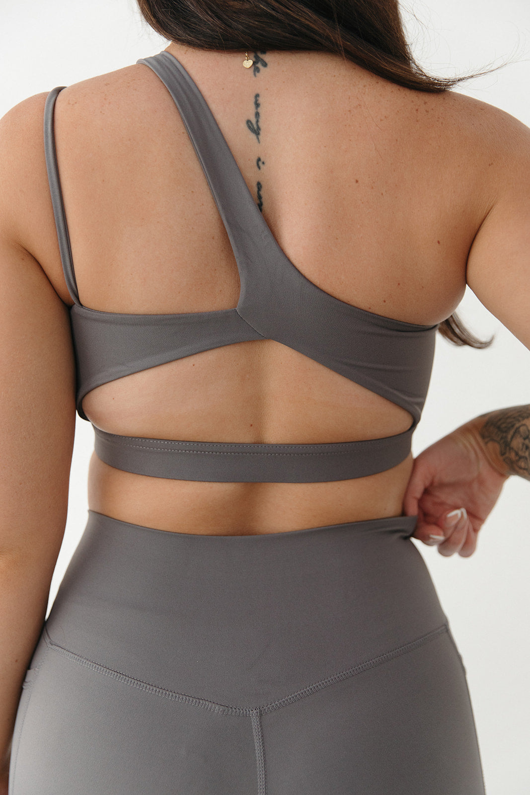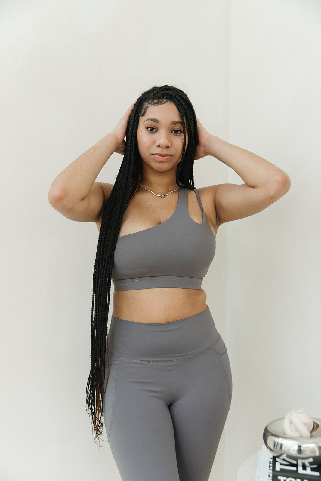 Introducing the SHE AINT PLAYIN Bra, the epitome of style and functionality. This one-shoulder sports bra is designed to make a statement while providing ultimate comfort. The soft fabric feels gentle against your skin, allowing you to focus on your workout without distractions.